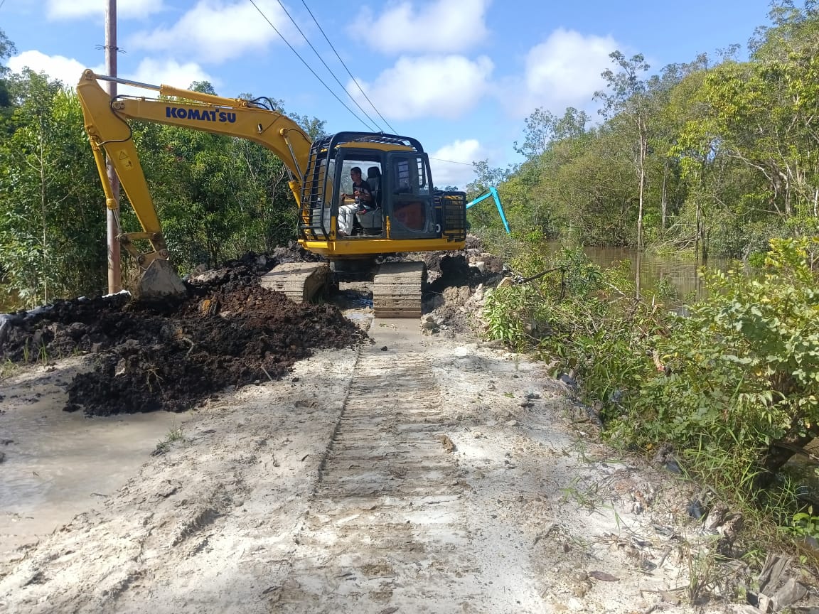 Barito Selatan – Alat berat excavator menjadi andalan utama Satgas TMMD Kodim 1012/Buntok dalam melaksanakan pembangunan di Jalan Desa Talio, Kecamatan Dusun Selatan, Kabupaten Barito Selatan. Selain digunakan untuk mengeruk tanah, excavator juga difungsikan untuk mengangkut kayu dengan bucket yang dimilikinya.